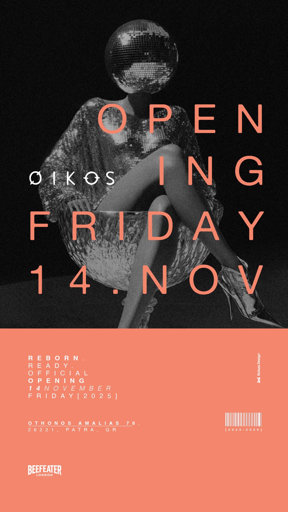 To ΟΙΚOS που όλοι στην Πάτρα αγαπούν… αλλάζει σημείο! “Μετακομίζει” στο πρώην Coco’s στην Οθωνος Αμαλίας και… σας περιμένει όλους από αυτήν την Παρασκευή. Με την γνωστή εκπληκτική μουσική και την εγγυημένη διασκέδαση που το OIKOS ξέρει να προσφέρει.