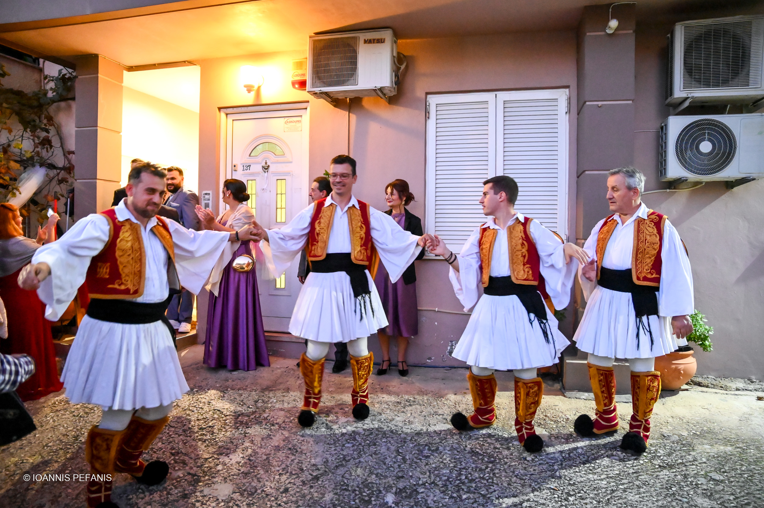 Το έθιμο ξεκινησε στο σπίτι της νύφης που συνοδεύτηκε μουσικά από τον Βασίλη Κωστούλα, προσφέροντας ένα έντονα παραδοσιακό και συγκινητικό κλίμα.