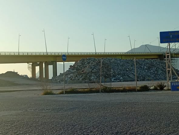 Δίπλα υπάρχουν λόφοι από χώματα και άλλα υλικά.