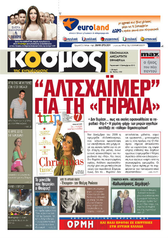 Σταμάτησε η κυκλοφορία και του ενθέτου της εφημερίδας Νεολόγος … “Κόσμος της Πάτρας”. Η εφημερίδα που κάποτε είχε κάνει ρεκόρ κυκλοφορίας και πωλησεων, εδώ και μερικά χρόνια είχε σταματήσει να κυκλοφορεί “αυτόνομα” και είχε συμπεριληφθεί ως ένθετο στον “Νεολόγο”! Από σήμερα δεν υπάρχει ούτε εκεί και το ένθετο με τίτλο “Κόσμος των σπορ” έγινε αθλητικό! Η εφημερίδα Κόσμος είχε ξεκινήσει από τον Ομιλο Plus Media με συμμετοχή 13 συντακτών της Πάτρας εν έτει 2005. Τα πρώτα χρόνια έκδοσης … ξεπουλούσε στα περίπτερα, ενώ υπήρξε εποχή που έσπασε το ένα μετά το άλλο τα ρεκόρ πωλήσεων.