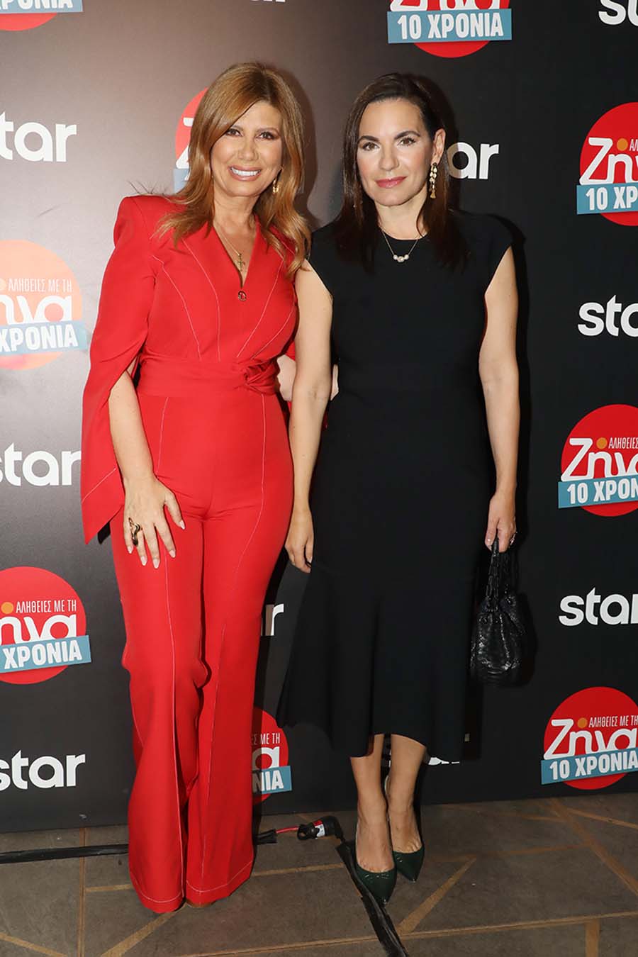 Μη βιαστείτε να βγάλετε λάθος συμπεράσματα, γιατί η λαμπερή παρουσιάστρια, που δεν την αγγίζει ο χρόνος, δεν έσβησε τα δέκα κεράκια για τον εαυτό της, αλλά για την εκπομπή της «Αλήθειες με τη Ζήνα», που συμπλήρωσε μέσα από τη συχνότητα του Star δέκα χρόνια τηλεοπτικής ζωής! Εκεί, λοιπόν, ανάμεσα στα δεκάδες τηλεοπτικά πρόσωπα που έσπευσαν να αγκαλιάσουν και να ευχηθούν στην Κουτσελίνη (που φορούσε μια κόκκινη ολόσωμη φόρμα με ενσωματωμένη κάπα) και στους συνεργάτες της, όπως και στον δικό μας Νίκο Νικόλιζα, η «Espresso», που ήταν παρούσα, κατέγραψε την παρουσία της υπουργού Τουρισμού Ολγας Κεφαλογιάννη, που oμολογουμένως εντυπωσίασε με την κομψότητά της! Για την περίσταση, η υπουργός επέλεξε ένα μίντι μαύρο φόρεμα που αγκάλιαζε τη σιλουέτα της και το συνδύασε με ένα ζευγάρι chic μαύρες γόβες.